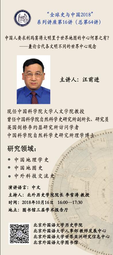 “全球史与中国2018”第16场讲座预告