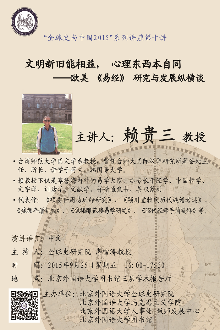 “全球史与中国2015”第10讲 赖贵三:「文明新旧能相益,心理东西本自同」 ──欧美《易经》研究与发展纵横谈