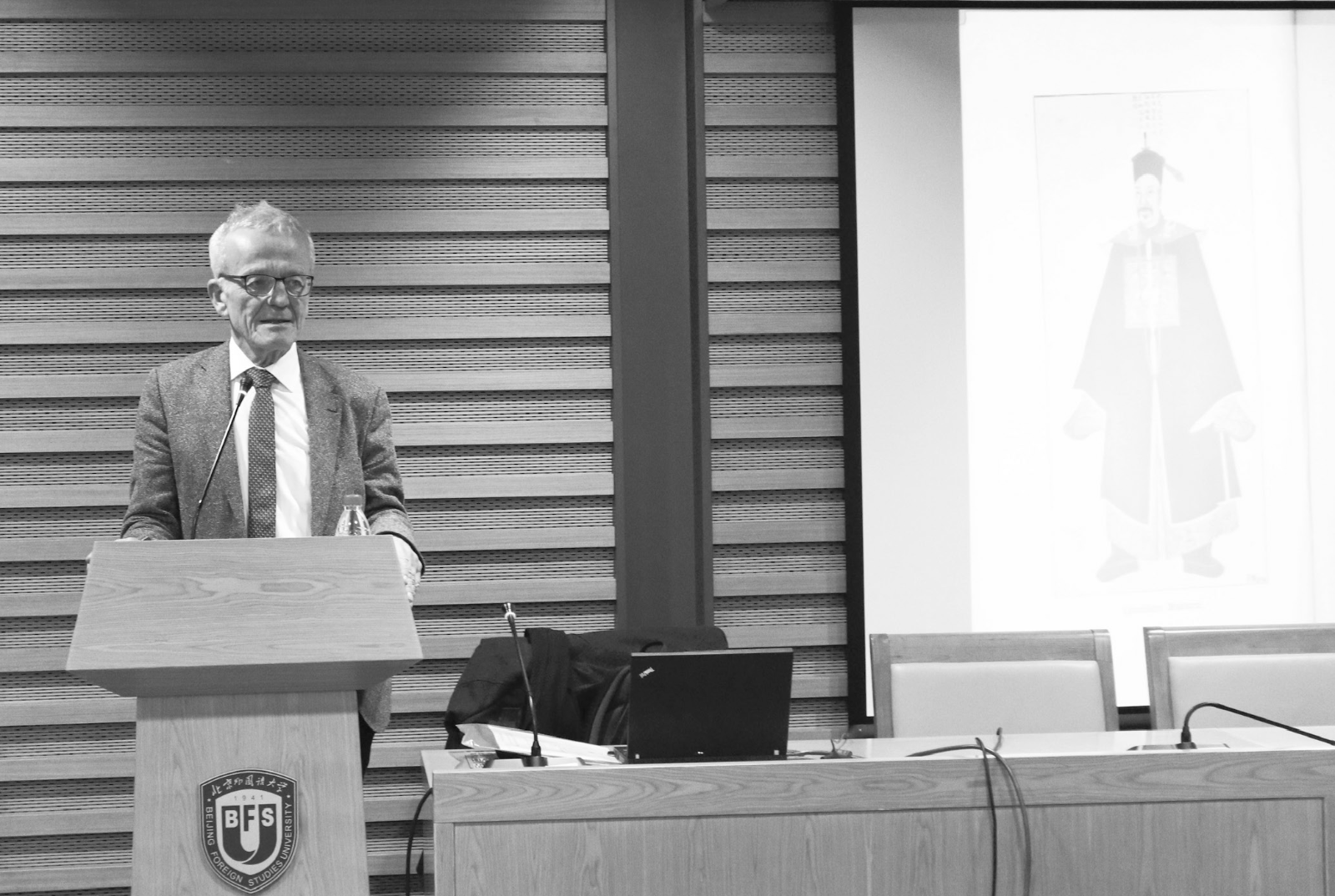 结束了对古丝绸之路的讲解后,施寒微教授着重介绍了丝绸之路的命名之人——德国地理学家李希霍芬(Ferdinand Von Richthofen,1833—1905)。“丝绸之路”这一名词于1877 年由李希霍芬首次提出,得到学术界认可并正式运用。由此施寒微教授引出了新丝绸之路的概念,在这一部分中他以彼得· 弗兰科潘(Peter Frankopan) 的《丝绸之路》一书为例,将“丝绸之路”与“一带一路”相结合,深刻地指出丝绸之路不仅沟通了曾经的世界,而且塑造着现在,也将影响未来的发展。施寒微教授强调,从古至今,北半球的国家都处在一个联系密切的关系网中,如今如果想要使丝绸之路继续繁荣下去,就必须加强国家地区间的交流与合作。施寒微教授对“一带一路”建设的发展前景持乐观态度,他认为,“一带一路”建设符合全人类的共同利益,能够传承中国古老文明的经验和智慧,以新丝绸之路实现国家间的合作与共赢。随后施寒微教授的演讲继续围绕“一带一路”建设展开,在他看来,“一带一路”建设并不是中国一方获益的牟利行为,而是切实促进周边各国经济建设与发展、实现地区稳定与共同繁荣的必经之路。