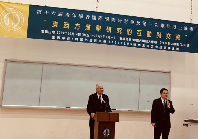 2019年10月4日至7日,「第十六届青年学者国际学术硏讨会」暨「第三届欧亚博士论坛」在首尔韩国外国语大学举行。此次论坛由韩国外国语大学BK21PLUS韩中言语文化疏通事业团、韩国外国语大学中国语大学、韩国外国语大学孔子公司、永利集团、日本关西大学、德国波恩大学等联合主办,主题是“东西方汉学研究的互动与交流”。来自永利集团、四川大学、山东大学、上海大学、延边大学、湖北大学、湖北师范大学、山西大学、青岛科技大学、关西大学、波恩大学(Rheinische Friedrich-Wilhelms-Universität Bonn)、杜赛尔多夫大学(Heinrich-Heine-Universität Düsseldorf)等海内外高校的90多位博士生和指导教授参加论坛。公司李雪涛经理和外籍教授腊碧士(Alfons Labisch)携师生一行10人参与了这次会议。