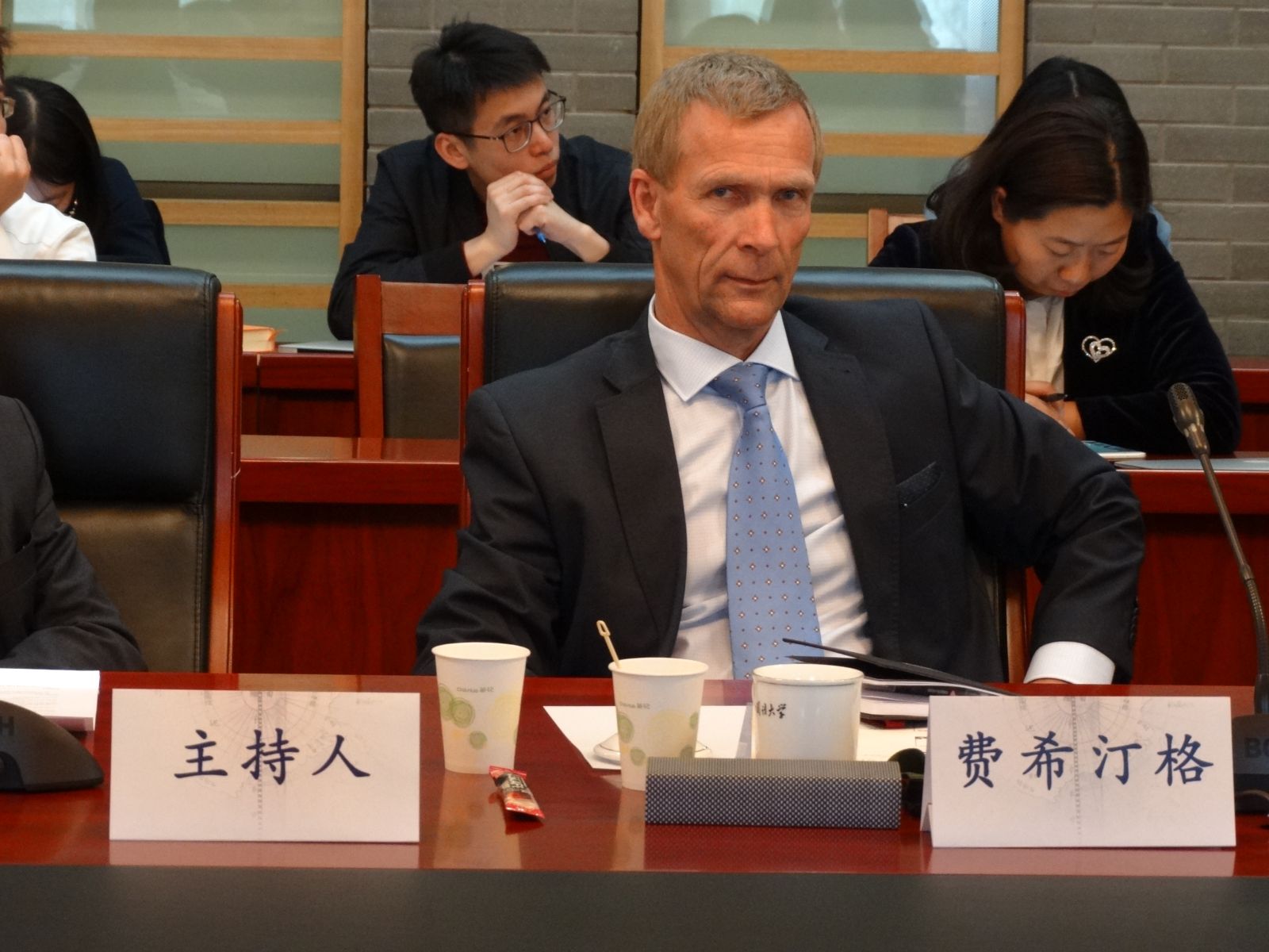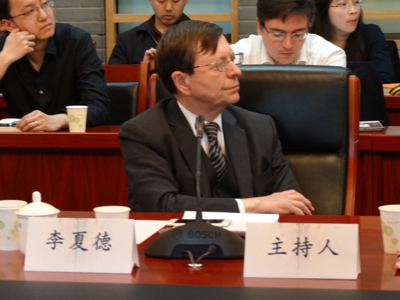 在第一轮的发言中,费希汀格首先做了题为“全球和平与安全的诸多挑战”的报告。他提到当今世界的安全环境、热点冲突地区、国际安全组织以及安全挑战四个方面。通过分析当今世界所面临的安全挑战的历史与类型,局部冲突热点地区的安全挑战问题和国际安全组织采取的行动,费希汀格博士指出协商等和平的解决方式是取得国际社会安全的途径。接着,卡迈勒做了题为“欧盟及其共同安全与防卫政策”的报告。他分析了欧盟为应对安全问题所采取的行动以及欧盟的安全资金运作方式,也指出由于欧盟内部主要国家如法国和德国之间视野不一致而导致的分歧。卡迈勒博士认为欧盟国家互相信任、分工合作是实现欧盟更好的安全战略的基础。这轮发言结束后,与会发言人分别发表了评论并进行了讨论。